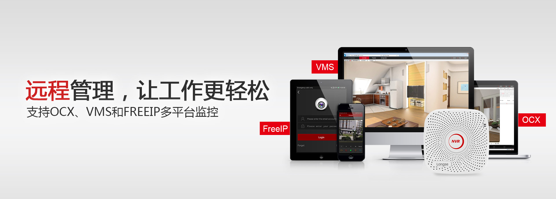 通過多平臺(tái)支持,監(jiān)控也可以如此簡單。長視科技4路PoE網(wǎng)絡(luò)硬盤錄像機(jī)支持多軟件平臺(tái)管理,比如由長視科技研發(fā)的OCX、VMS和FREEIP,能夠?yàn)橛脩籼峁╇娔X端、網(wǎng)頁端、手機(jī)端的遠(yuǎn)程監(jiān)控便利,輕松管理。